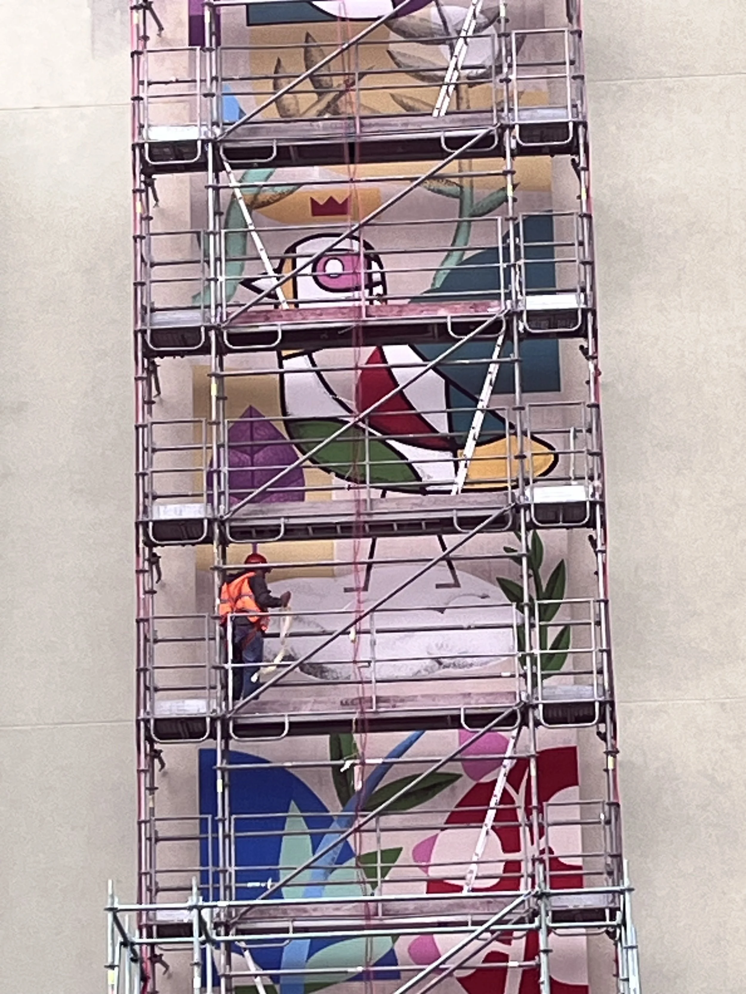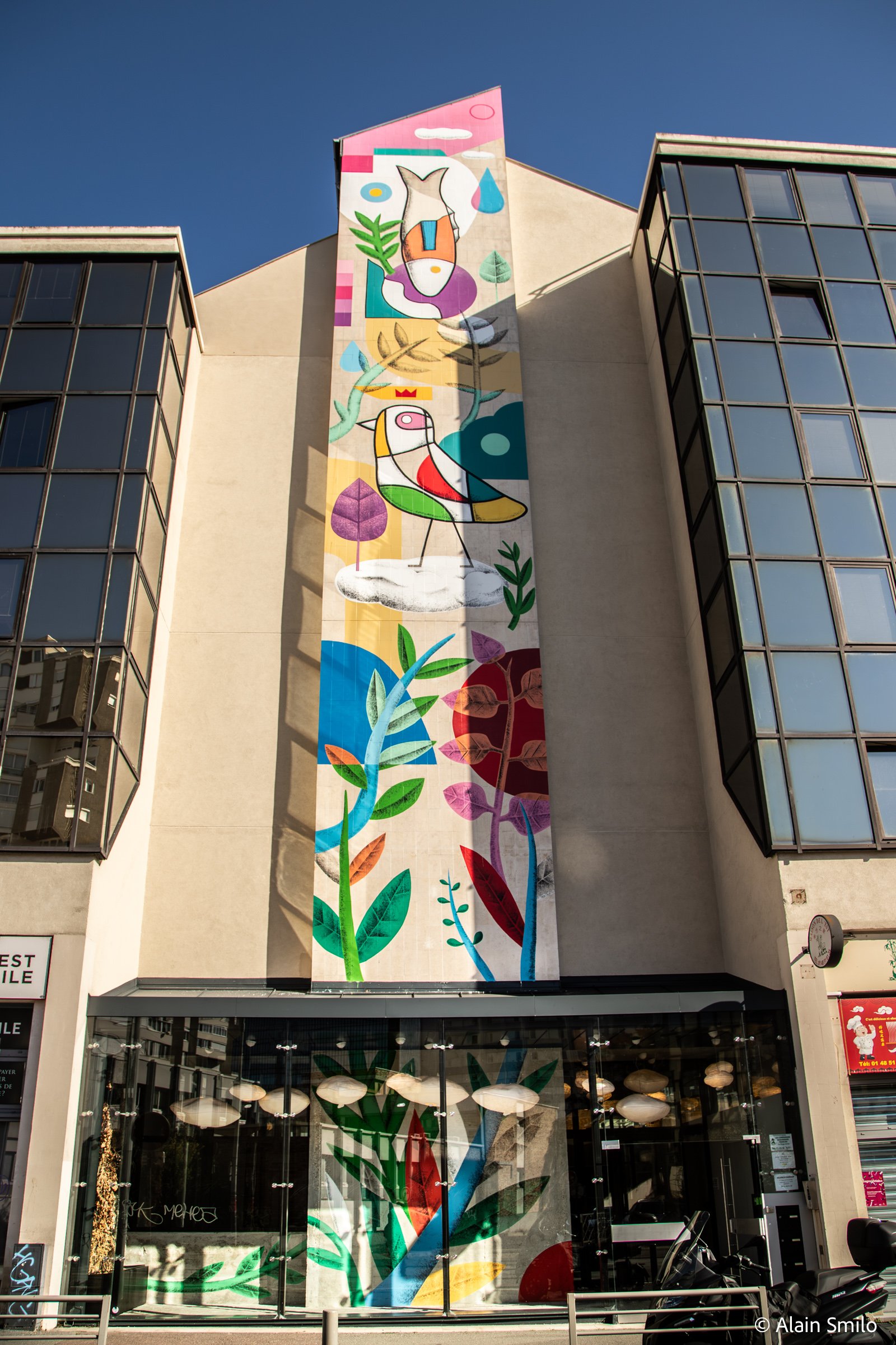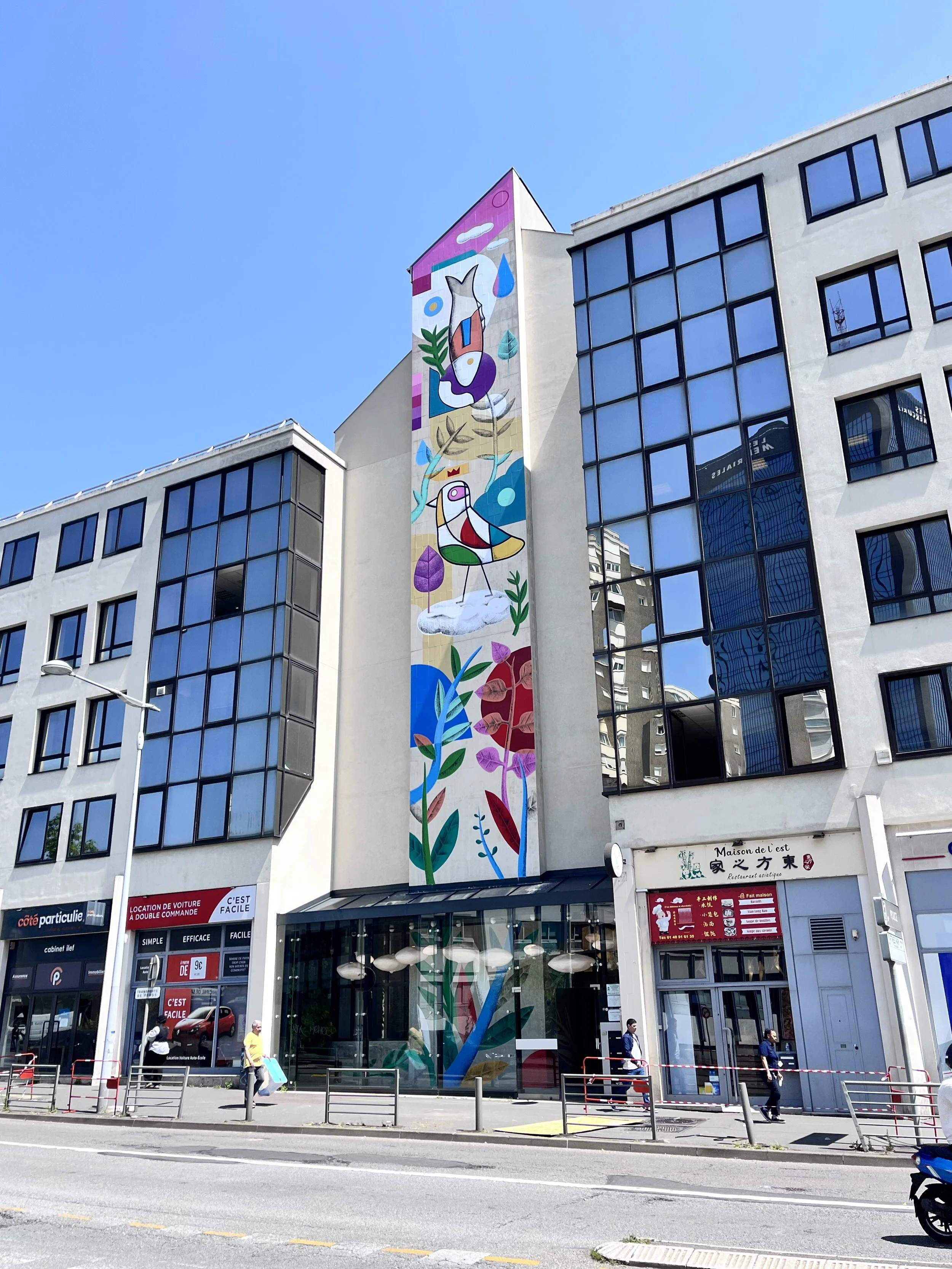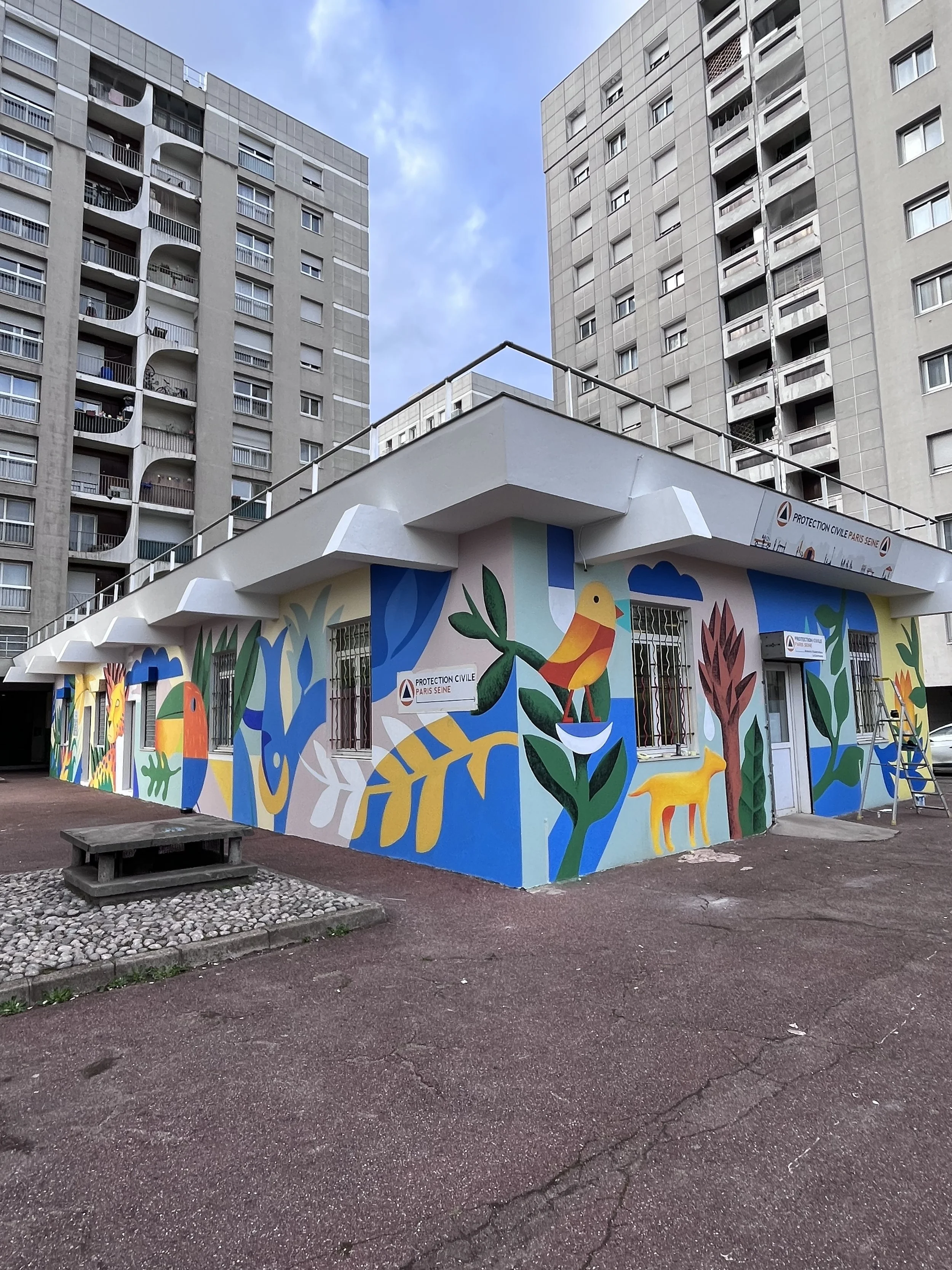 Pour accompagner cette transformation, le collectif d'artistes Douze Douze basé à Bagnolet a imaginé et peint plusieurs fresques sur les piliers du viaduc de l'autoroute A3 et autour de l'échangeur. Telles des vitraux d'une cathédrale faite de béton, elles colorent un lieu jusque-là perçu comme hostile, en proposant des images qui vous invitent à regarder autrement le quartier dans lequel vous vivez ou que vous traversez.